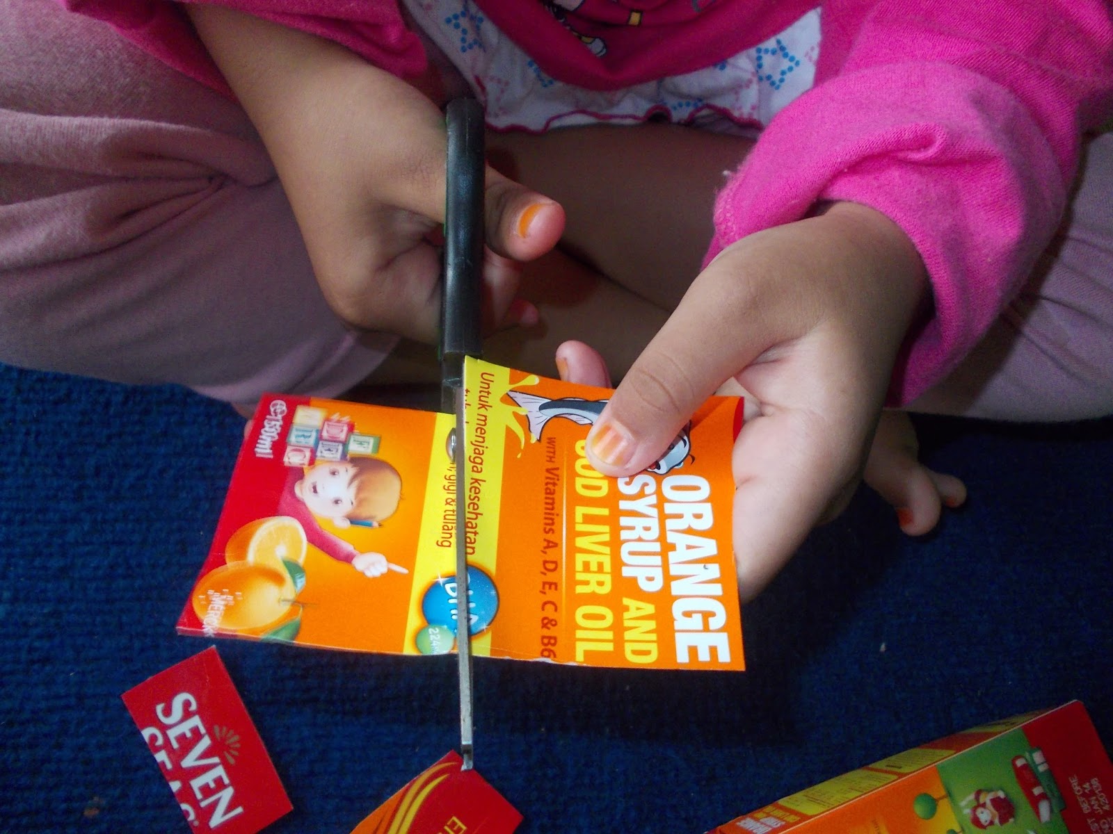 anak aktif saya mulai berkreasi. Setelah kepingan kotak kemasan seven seas